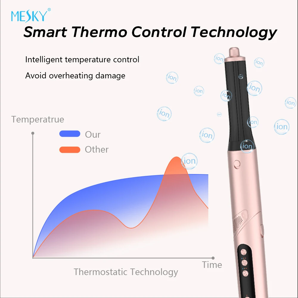 The negative ion technology creates a protective barrier around each hair strand, sealing the hair cuticle and locking in natural oils and treatments. This results in enhanced shine, improved manageability, and reduced styling damage over time. The system operates automatically throughout the styling process, requiring no additional user intervention while delivering consistent protective benefits.