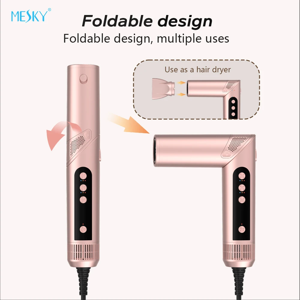 Travel professionals, including mobile stylists and beauty consultants, benefit from the compact foldable design that enables easy transportation without compromising styling capabilities. The durable brushless motor technology ensures reliable performance across various environmental conditions, while the comprehensive functionality supports diverse client needs in mobile service situations.