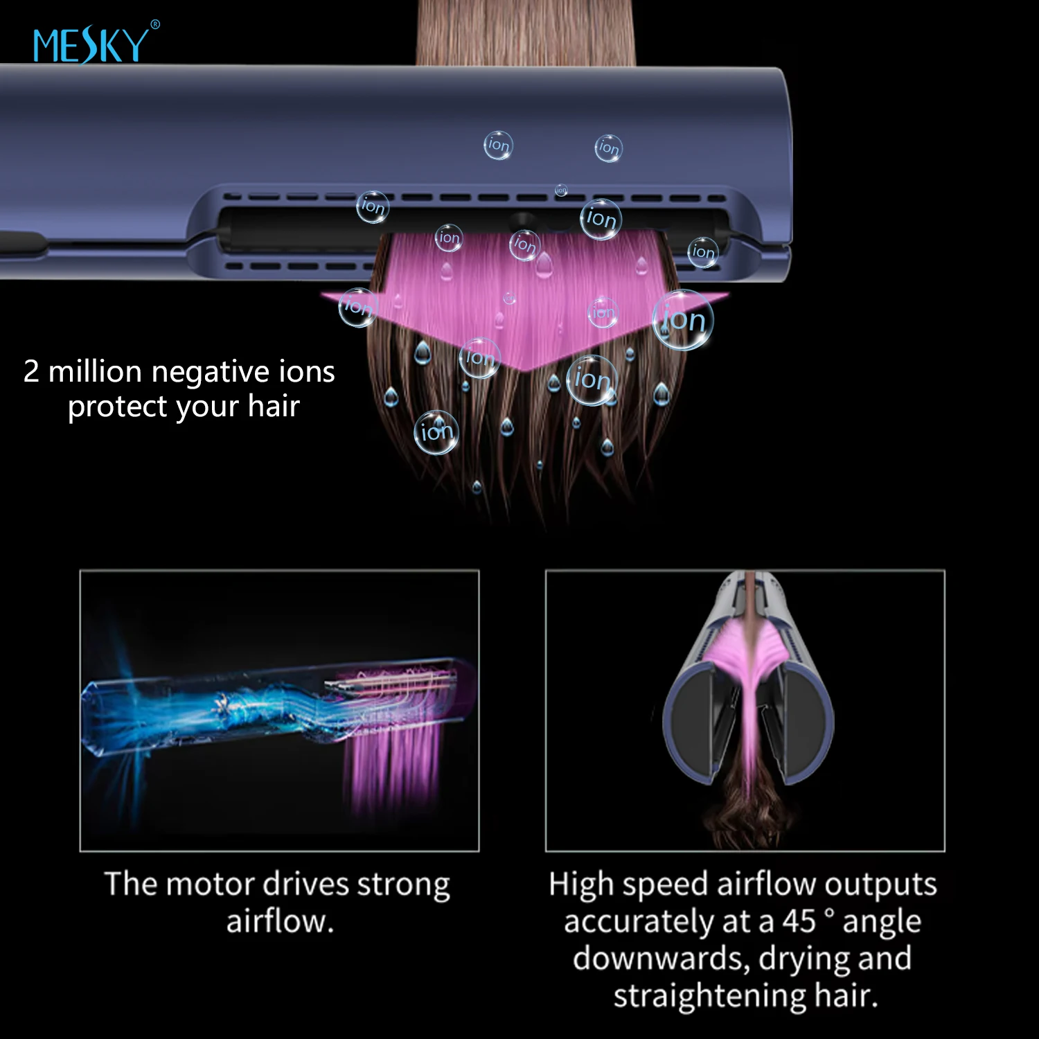 The revolutionary wet-to-dry capability of the MESKY Hair Dryer Straightener Wet to Dry Styler with LED Display Electric Hair Straightener Brush eliminates the traditional multi-step process of hair styling. This innovative feature allows users to begin styling with damp hair and achieve completely dry, straightened results in a single session. The technology behind this functionality combines controlled airflow with precise heating elements to remove moisture while simultaneously shaping and straightening hair fibers.