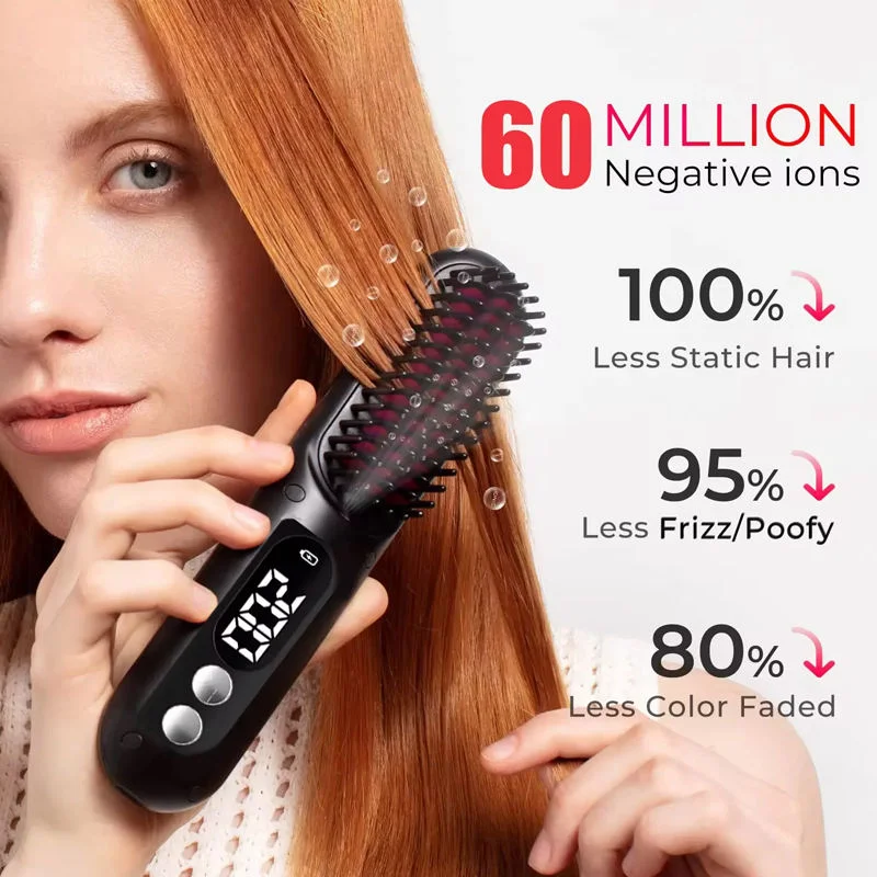 Experience salon-quality hair styling on the go with the MESKY Cordless USB Rechargeable Hair Straightener Brush. This innovative ionic hair comb combines the convenience of cordless operation with advanced straightening technology.