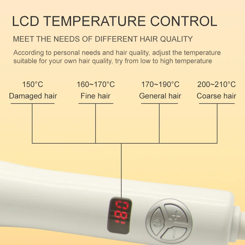 The integrated LCD display transforms the curling experience by providing precise temperature monitoring and intuitive control options. This digital interface eliminates guesswork from the styling process, allowing users to select optimal heat settings for specific hair types and desired curl intensity. The clear display remains visible during use, enabling real-time adjustments without interrupting the styling flow.