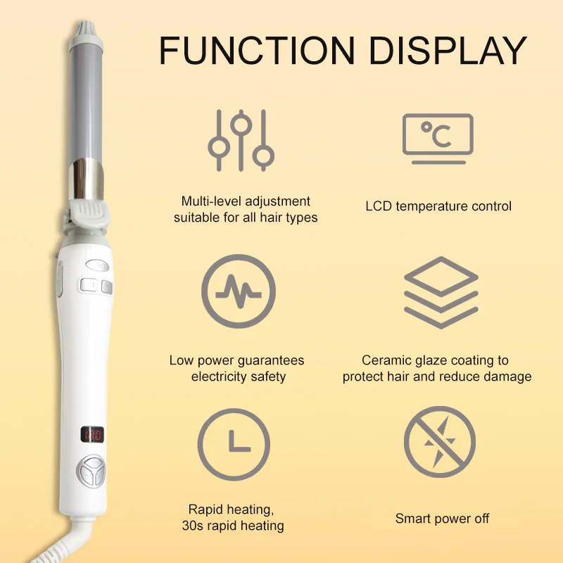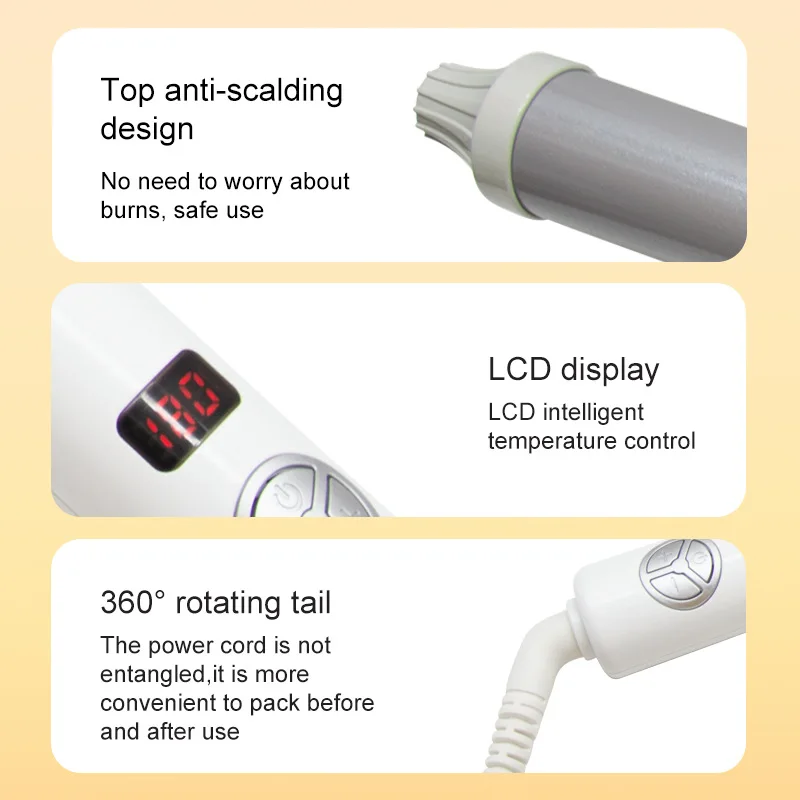 The New LCD Automatic Hair Curler Rotating Curling Iron Ceramic Professional Heating Hair Stick Portable Air Spin Curl for Hair Type represents significant advancement in professional hair styling technology, combining automated convenience with precision control and safety features. The integration of ceramic heating, LCD monitoring, and automatic rotation creates a comprehensive styling solution that addresses the evolving needs of beauty professionals and discerning consumers. This innovative curling system delivers consistent professional results while reducing styling time and physical strain, making it an valuable addition to any beauty equipment collection. The combination of advanced features, quality construction, and comprehensive support services positions this curling iron as a strategic investment for businesses seeking to enhance their styling capabilities and client satisfaction.