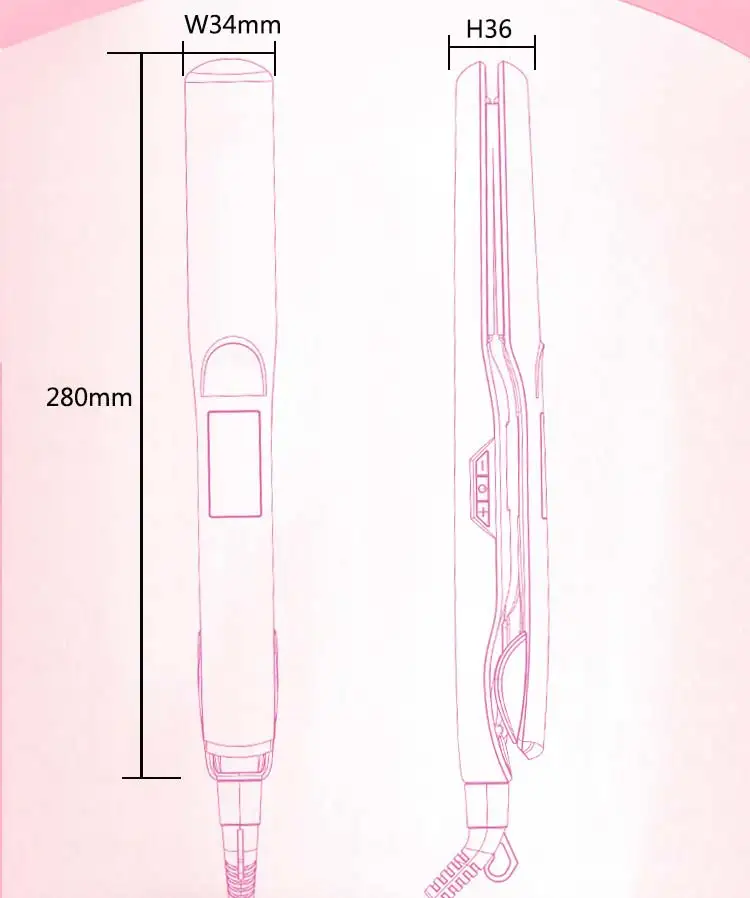 Perfect for both salon and personal use, this versatile flat iron features ergonomic design and adjustable temperature controls to suit all hair types. The nano titanium technology releases negative ions that help seal the hair cuticle, reduce frizz, and lock in moisture for long-lasting, salon-quality results. Whether you're straightening, smoothing, or creating soft waves, this custom-branded styling tool delivers exceptional performance and reliability. Ideal for keratin treatments, its floating plates ensure even pressure and prevent hair snagging, making styling effortless and delivering silky, shiny results every time.