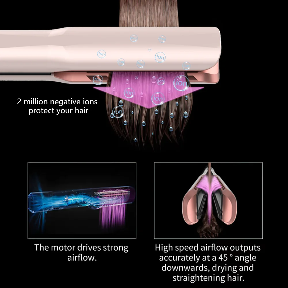 This versatile 2-in-1 hot air styler combines the power of a hair dryer with the precision of a straightener, offering professional salon-quality results at home. Featuring premium titanium plates that ensure even heat distribution and reduce frizz, this innovative styling tool helps you achieve sleek, smooth hair with minimal damage.