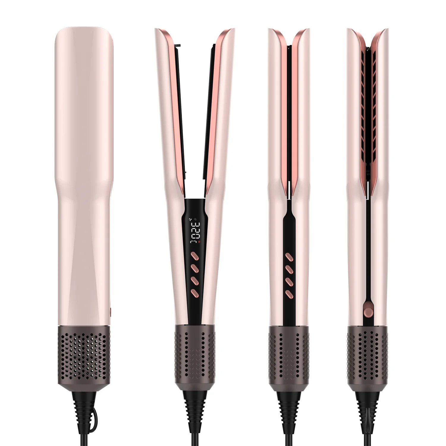Professional 2-in-1 Hot Air Styler New Design Flat Iron LCD Display Titanium Plate Electric Hair Dryer Straightener
