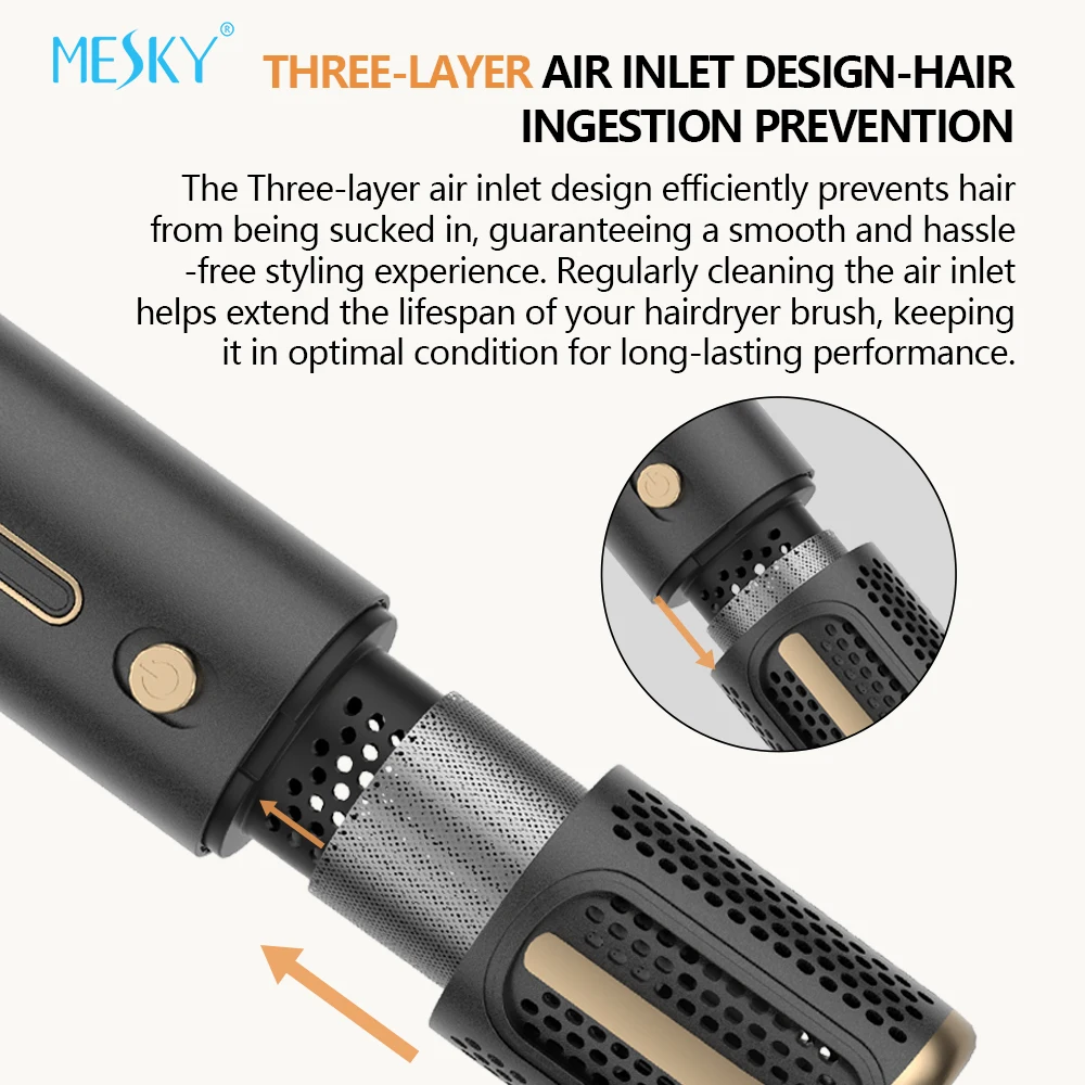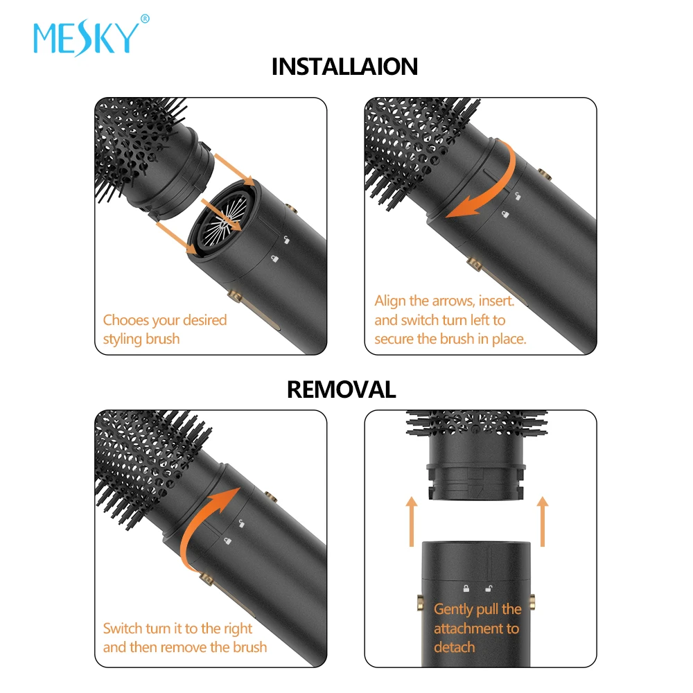 Multiple interchangeable attachments enable users to create diverse hairstyles ranging from voluminous blowouts to defined curls and sleek straight looks. The brush attachment features mixed bristle technology that detangles while styling, making it suitable for wet-to-dry styling applications. The curling barrel attachment accommodates various curl sizes and patterns, while the concentrator nozzle provides precision airflow for targeted styling and smoothing.